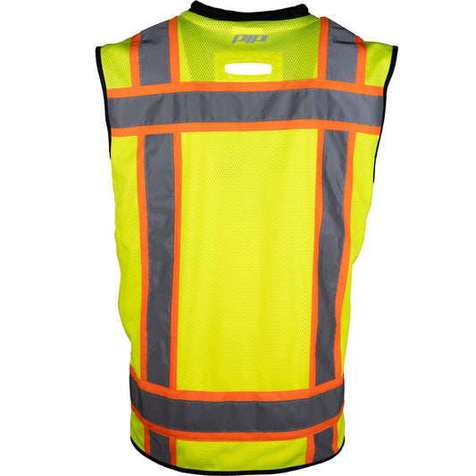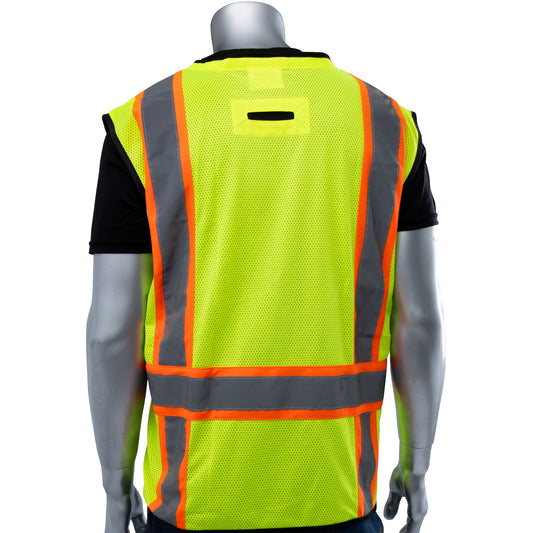 PIP® ANSI Type R Class 2 Two-Tone Eleven Pocket Tech-Ready Mesh Surveyors Vest with Ripstop Black Bottom Front and "D" Ring Access