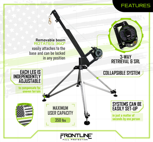 Frontline DAN75RA-US Patriot™ Confined Space Davit with 50' 3-Way Retrieval System - Made in USA
