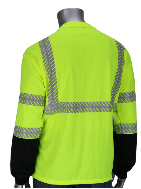 PIP® ANSI Type R Class 3 Long Sleeve T-Shirt with 50+ UPF Sun Protection, Built-in Insect Repellent and Black Bottom Front