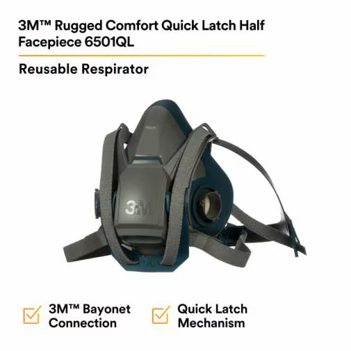 3M™ Rugged Comfort Quick Latch Half Facepiece Reusable Respirator 6501QL, 6502QL, 6503QL