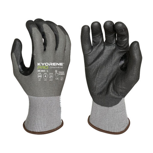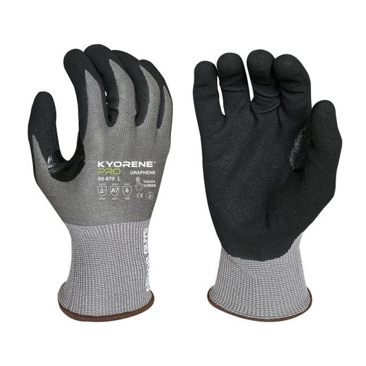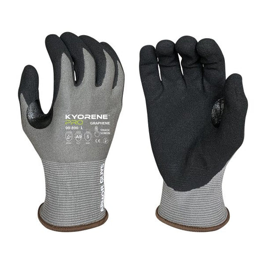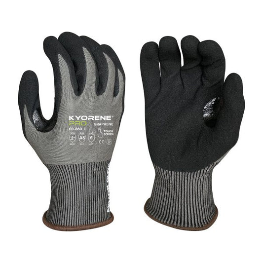 18g Gray Kyorene Pro® Liner With Black HCT® Micro Foam Nitrile Palm Coating, Thumbcrotch Reinforcement, Touch Screen, ANSI A6