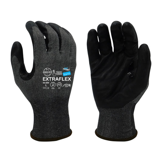 18g ExtraFlex® Cut Resistant Black Engineered Liner With Dark Gray HCT® Nano Foam Nitrile Palm Coating And Nitrile Reinforced Thumb Crotch, ANSI A5