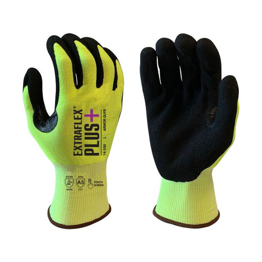15 Gauge, ExtraFlex Plus® Hivis Engineered Liner With Black HCT® Micro Foam Nitrile Palm Coating, Thumb Croth Reinforcement, Touch Screen, ANSI 5