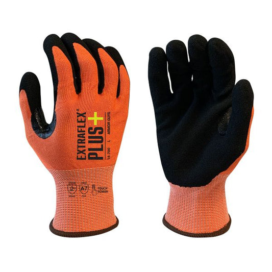 15 Gauge, ExtraFlex Plus® Orange Engineered Liner With Black HCT® Micro Foam Nitrile Palm Coating, Thumb Croth Reinforcement, Touch Screen, ANSI 7
