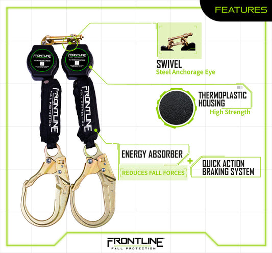 Frontline Class 2 Leading Edge Cable Single Leg SRL with Steel Snap Hook End with Carry on Handle and Tagline