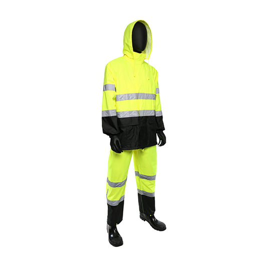 ANSI Type R Class 3 Two-Piece Rain Suit with Black Bottom