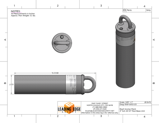 18” Tall Roof Anchor Point / Weld On RAP-018-35-23