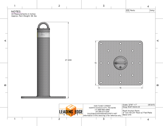 24” Tall Roof Anchor Point / 16’ x 16” x 5/8” Base Plate RAP-24-1616-23
