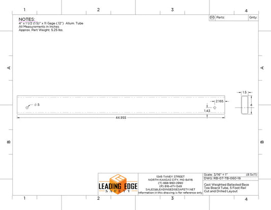 5’ Aluminum Toe Board for Ballasted Guardrail RB-07-TB-060-16