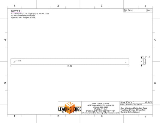 8’ Aluminum Toe Board for Ballasted Guardrail RB-07-TB-096-16
