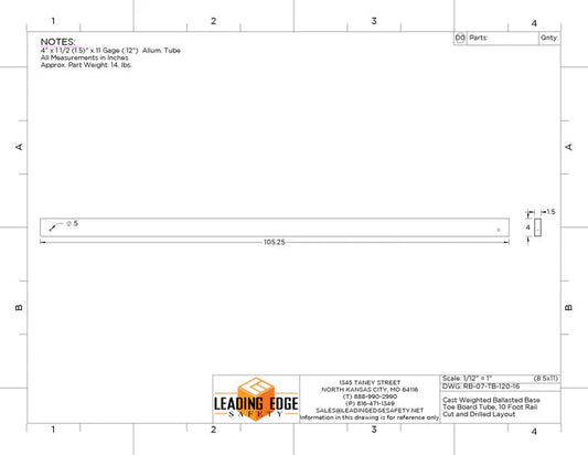 10’ Aluminum Toe Board for Ballasted Guardrail RB-07-TB-120-16