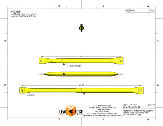 29" - 43" Horizontal Adjustable Steel Rail RB-ARAIL-43