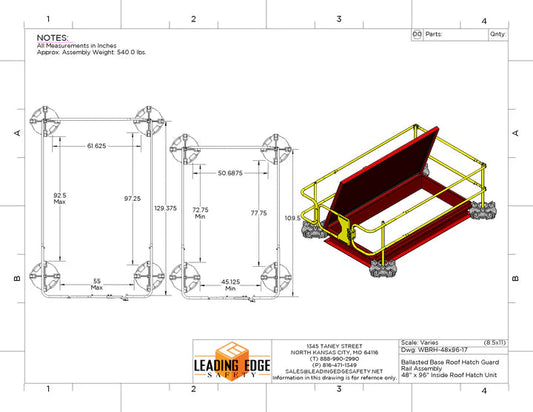 Ballasted Roof Hatch Guardrail For A 48" X 96" Hatch WBRH-48X96-17-ASM