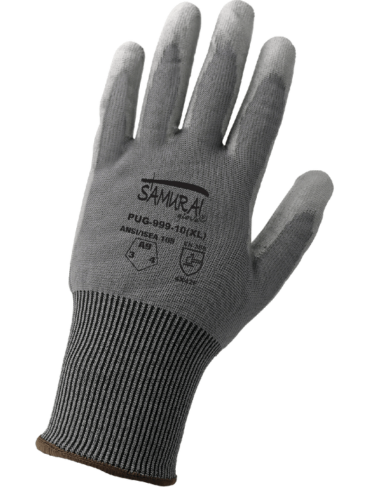 Global Glove PUG-999-6 Samurai Glove® Smooth Polyurethane-Coated Seamless Gray Tuffalene® UHMWPE Cut, Abrasion, and Puncture Resistant Gloves - PUG-999 – Cut Level A9, 18-Gauge