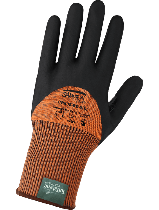 Global Glove CR815D-6 Samurai Glove® High-Visibility Cut Resistant Coated Touch Screen Gloves Made with 15-Gauge Tuffalene® Platinum - CR815D – Cut Level A5, Nitrile