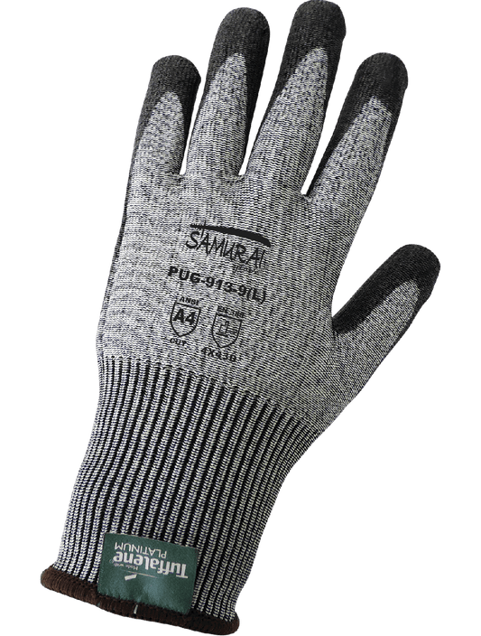 Global Glove PUG-913-5 Samurai Glove® Cut Resistant, Salt-and-Pepper 13-Gauge Tuffalene® Platinum Polyurethane Coated Gloves - PUG-913 – Cut Level A4