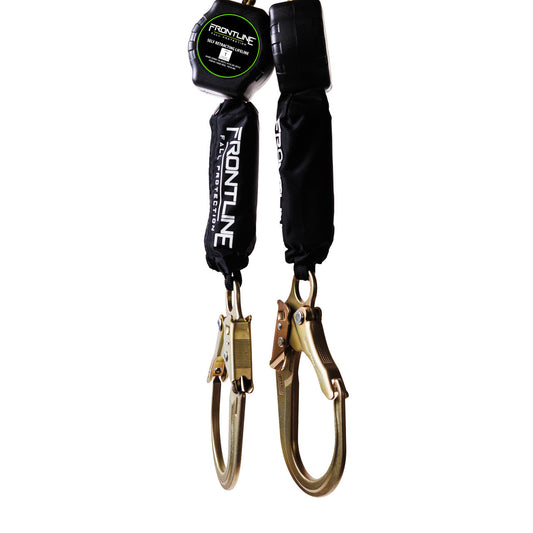 Frontline Fall RPW062R Web Twin Leg 6' SRL with Steel Rebar Hook Ends – Polyurethane
