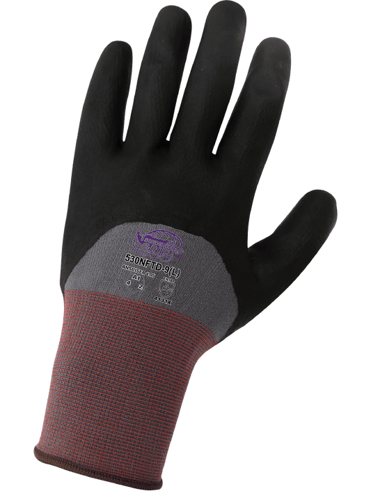 Global Glove 530NFTD-6 Tsunami Grip® Lightweight New Foam Technology Nitrile Three-Quarter Coated Nylon/Spandex Dotted Gloves with Cut, Abrasion, and Puncture Resistance - 530NFTD – Cut Level A1, 15-Gauge