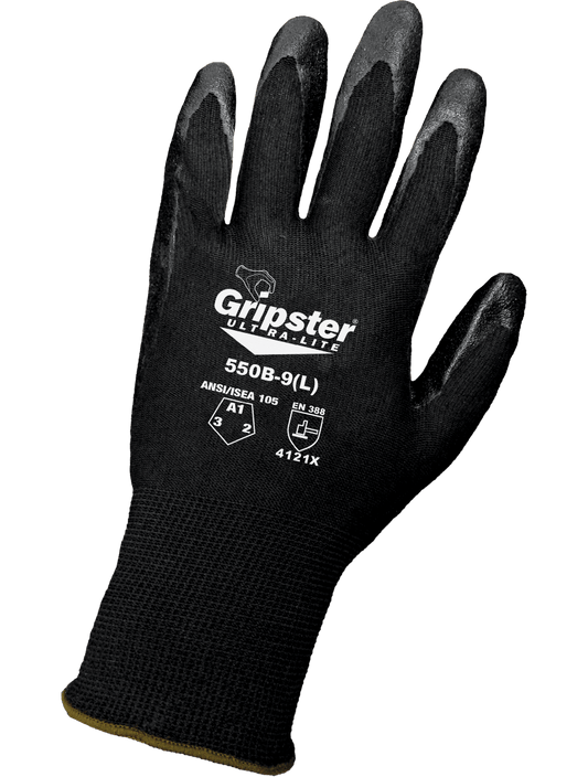 Global Glove 550B-7 Gripster® Ultra-Lite Black Foam Nitrile Coated Nylon Gloves with Cut, Abrasion, and Puncture Resistance - 550B – Cut Level A1, 15-Gauge
