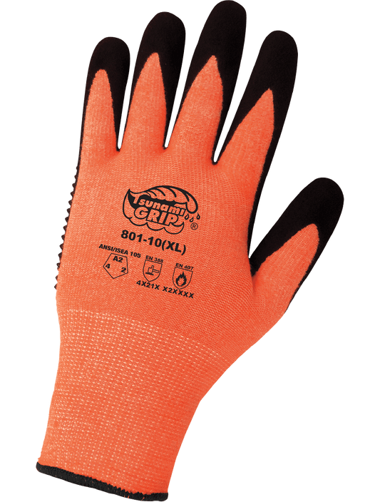 Global Glove 801-7 Tsunami Grip® Anti-Static/Electrostatic Compliant High-Visibility Nitrile Dotted Gloves with Cut, Heat, Abrasion, and Puncture Protection - 801 – Cut Level A2, 13-Gauge
