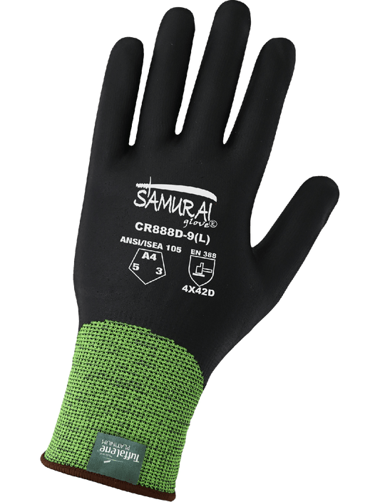 Global Glove CR888D-7 Samurai Glove® High-Visibility Cut Resistant Fully Coated Gloves Made with 18-Gauge Tuffalene® Platinum - CR888D – Cut Level A4, Nitrile