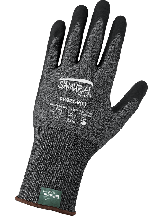 Global Glove PUG-921-6 Samurai Glove® Salt-and-Pepper Cut Resistant Polyurethane Coated Touch Screen Gloves Made with 21-Gauge Tuffalene® Platinum - PUG-921 – Cut Level A4, Nitrile