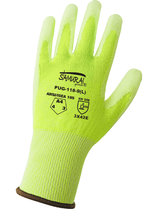 Global Glove PUG-118-5 Samurai Glove® High-Visibility PU Coated Tuffalene® UHMWPE Gloves with Cut, Abrasion, and Puncture Resistance - PUG-118 – Cut Level A4, 18-Gauge, Polyurethane