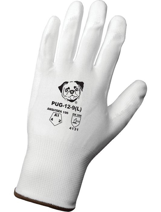 Global Glove PUG-12-6 PUG™ White Lightweight Polyurethane Coated Anti-Static/Electrostatic Compliant Nylon Gloves with Cut, Abrasion, and Puncture Resistance - PUG-12 – Cut Level A1, 13-Gauge