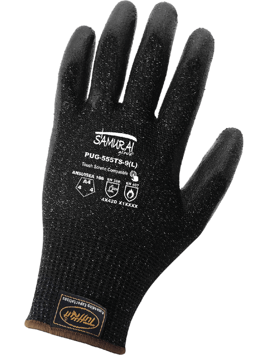 Global Glove PUG-555TS-6 Samurai Glove® Cut Resistant Polyurethane Coated 13-Gauge TuffKut® Gloves with Three Touch Screen Responsive Fingertips - PUG-555TS – Cut Level A4