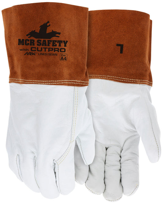 MCR 4955H - Leather Welding Work Gloves - Competitive Value (CV) C+ Grade Grain Cow Leather - 4 Inch Split Leather Bell Cuff - Lined and Sewn with ARX Cut Resistant Material for Excellent Durability, Model 4955HM