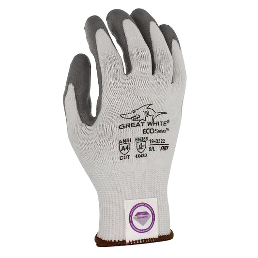 Great White® ECO Series™: Seamless Knit Dyneema® Diamond 2.0 Blended Glove with Polyurethane Coated Flat Grip on Palm & Fingers