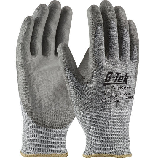G-Tek® PolyKor® Industry Grade Seamless Knit PolyKor® Blended Glove with Polyurethane Coated Flat Grip on Palm & Fingers - Bulk Pack