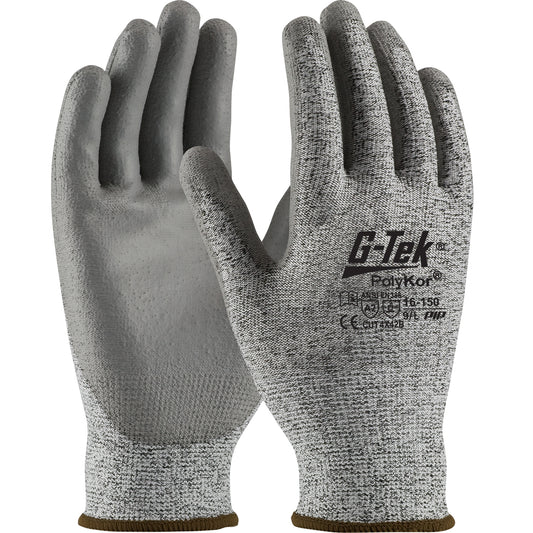 G-Tek® PolyKor® Seamless Knit PolyKor® Blended Glove with Polyurethane Coated Flat Grip on Palm & Fingers