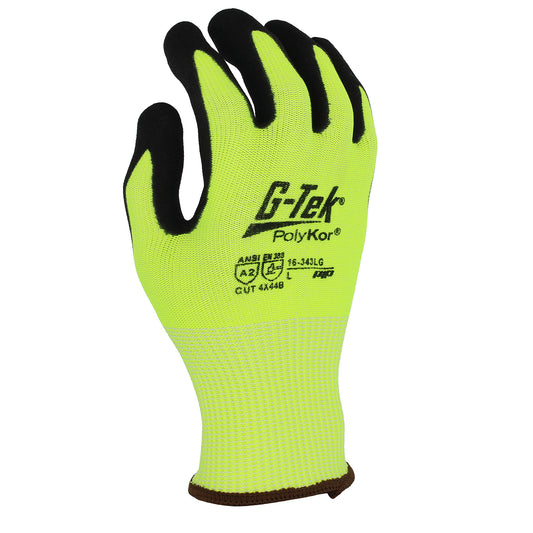 G-Tek® PolyKor® Hi-Vis Seamless Knit PolyKor® Blended Glove with Nitrile Coated Foam Grip on Palm & Fingers